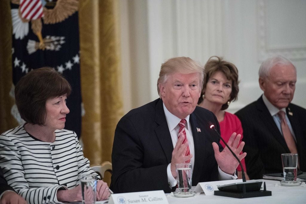 Maine Sen. Susan Collins, President Donald Trump, and Alaska Sen. Lisa Murkowski are seen on Capitol Hill on Jan. 15.